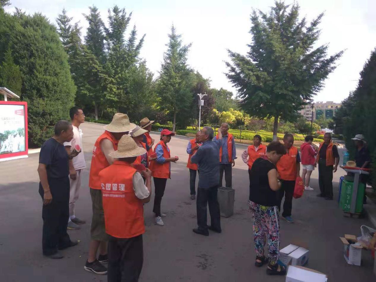 隨后,慰問活動小組又來到晉城八中附近,慰問了在八中公園辛勤勞動的8名一線員工。
